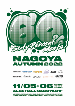 韓国・アジア各国で話題のブランドが750以上集まるオンラインセレクトストア「60%(シックスティーパーセント)」が、11月5日(土)・11月6日(日)でポップアップイベント「60% meets NAGOYA AUTUMN 2022」を開催することが決定。出店する人気11ブランドのうち、4ブランドは会場限定のスペシャル特典もご用意。