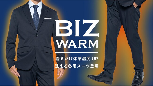この度、2022年10月1日(土)より保温性と軽量にこだわった冬用セットアップ「Bizウォームテーラードジャケット」と「Bizウォームフルレングスパンツ」を新発売いたします。本商品は、身体から発生する遠赤外線を吸収・蓄熱する保温性に優れた裏地を使用した寒い冬を暖かく乗り越えるための冬用セットアップです。さらに、昨年度に販売した冬用セットアップに比べ、約26%*の軽量にも成功しました。