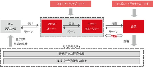 - 二つ目のスチュワードシップコードは、投資家と企業の関係を「協創」の関係へと転換し、投資リターンや企業価値の持続的成長と、経済・環境・社会全体のサステナビリティ向上を促進しました