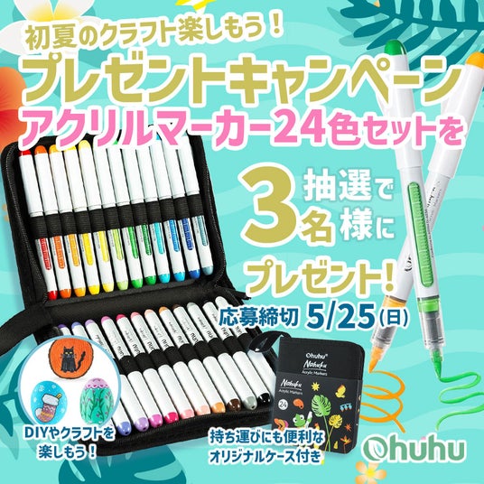人気イラストマーカーや画材を展開するOhuhu(オフーフー)は、DIYやクラフトにもぴったりなアイテムが当たる!プレゼントキャンペーンを開催中