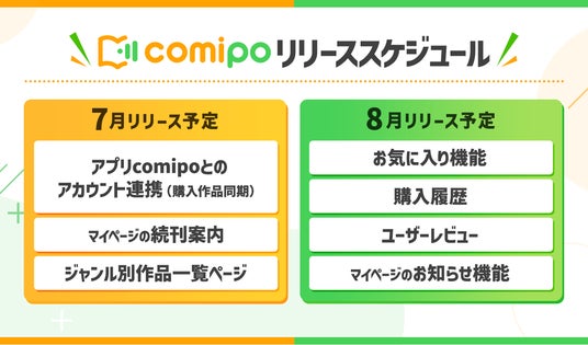 電子コミックストア『comipo』では、便利な機能やサポートを充実させより快適な読書体験を提供するべく、今後も継続的なアップデートを行ってまいります。