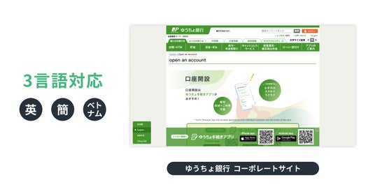 ゆうちょ銀行コーポレートサイト(一部ページ)を、WOVN.io で英語・中国語(簡体字)・ベトナム語へ対応しています(対応ページや対応言語は、今後拡大を検討)。