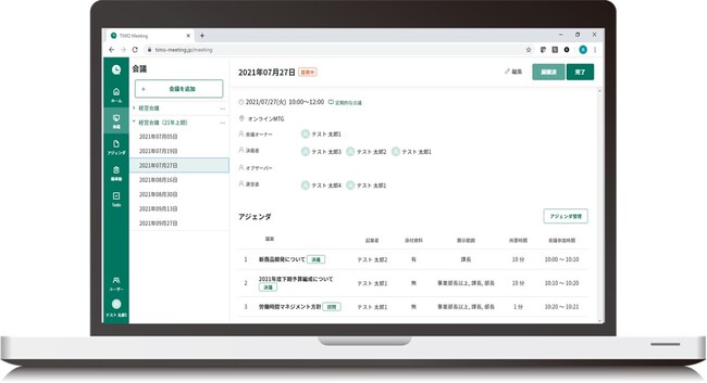 「TIMO」は、会議前~会議後までのプロセスをデジタル化と一元管理を通じて「会議品質の向上、会議時間の削減」を実現するミーティングマネジメントツールです。