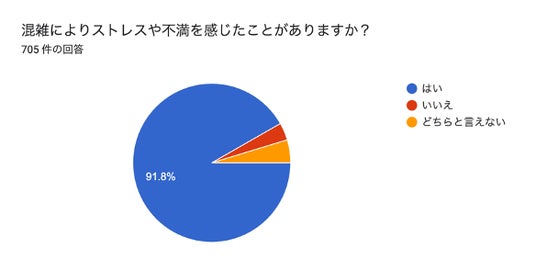調査によると、回答者の96.2%が『お出かけ先で混雑を経験したことがある』と答え、そのうち91.8%が混雑によってストレスや不満を感じたことがあることが分かりました【グラフ1参照】。