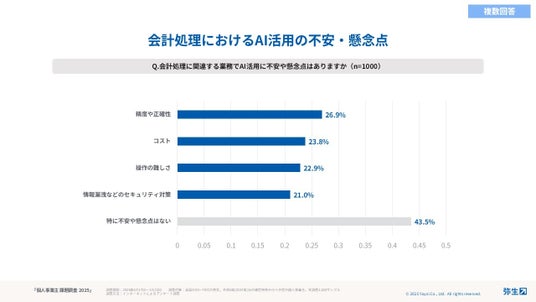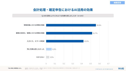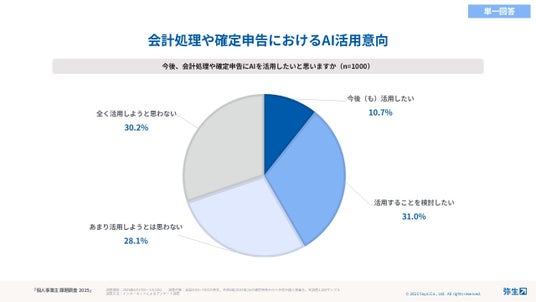 ・会計処理・確定申告で実際にAIを活用したことがある人は14.3%と限定的。一方全体の41.7%が確定申告へのAI活用への期待を見せた