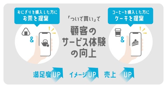 例)おにぎりを購入した方に「お茶」を提案したり、コーヒーを注文した方に「ケーキ」を提案するなど。 特に飲食業においては、的確な商品をご提案し、一緒に購入いただくことで、満足感が高まったり、「あのときのクッキー美味しかった」などの印象をもっていただくことで、将来リピート購入の可能性が出たりといった形で、「顧客のサービス体験の向上」と「売上の向上」の可能性があります。
