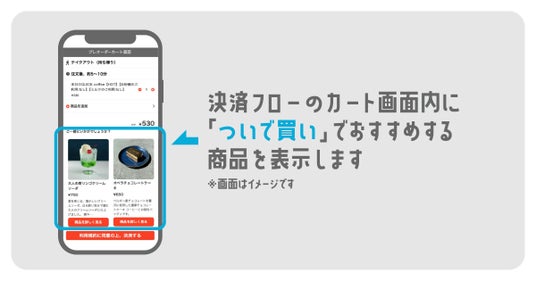 お客様が端末から直接注文することで商品購入できる「モバイルオーダー」では、これまで店頭でお店の方が「こちらも一緒にどうですか?」といった提案で発生していた「ついで買い(クロスセル)」をするためのタイミングがありません。