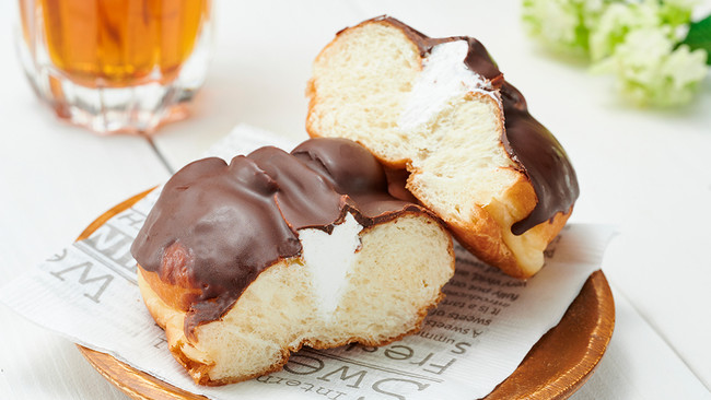 ふんわりとしたドーナツ生地に、たっぷりのホイップクリームをサンドして、チョコでコーティングしました。