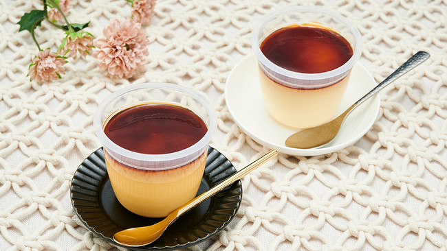 写真左:「かた*ぷりん」は、かためプリン派のために作ったしっかり食感のプリンです。卵をたっぷり使用した、昔ながらのたまごプリンです。