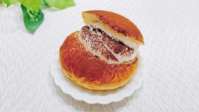 コーヒー風味のブリオッシュパンにマスカルポーネホイップをサンドし、ココアパウダーをかけてティラミス風に仕上げました。