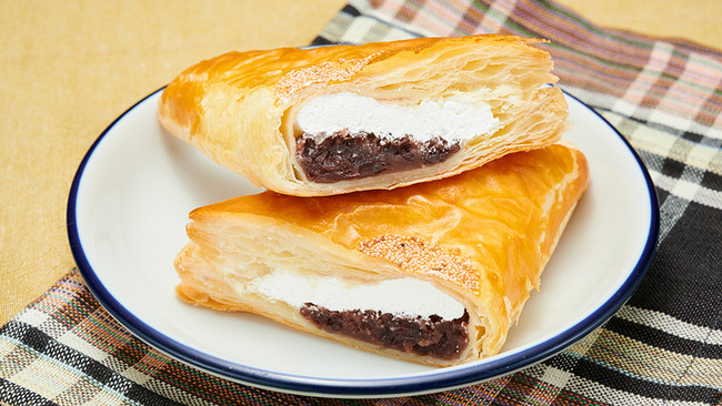 サックリと焼き上げたパイ生地に、粒あんとミルク風味ホイップクリームを包みました。
