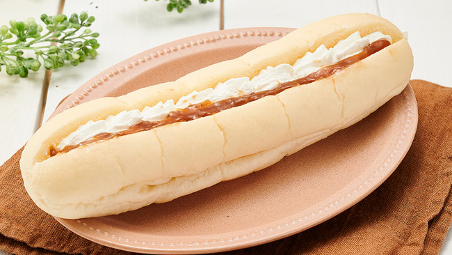ふわふわの白いロールパンに、塩味の効いた塩キャラメルクリームとミルクホイップをサンドしました。