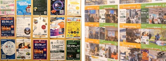 さらに、「たまり場」で開催した過去のイベントのチラシと写真を「アーカイブボード」に貼りつけ、様々なテーマで多様な方が集まっている様子を視覚的に見ていただける工夫もしました。
