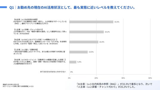 01|企業のAI 活用レベル、「AI 主導:Lv.3 社内知見の参照(RAG)」が33.3%で最多