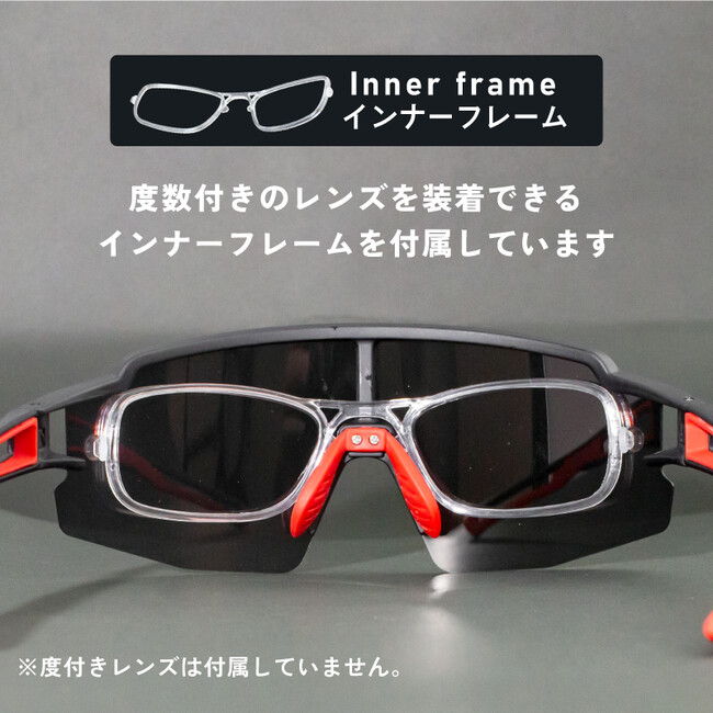 度数付きのレンズを装着できるインナーフレームを付属しています。