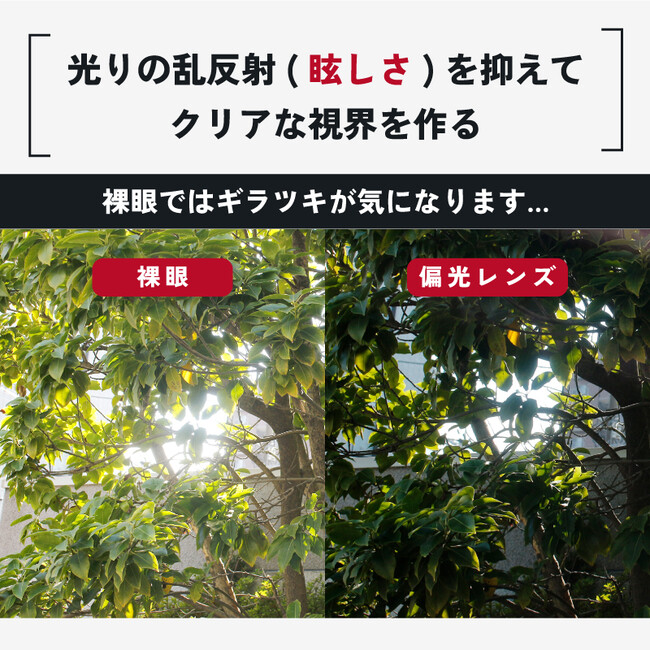路面や水面などの乱反射した光をカットし、視界をクリアにします。