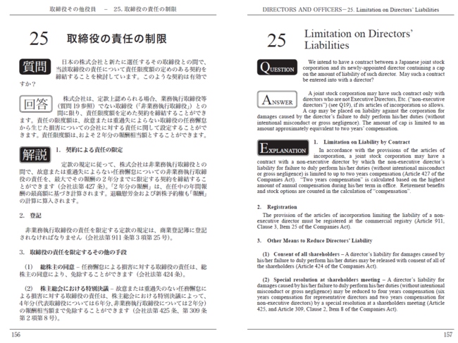 日本語と英語の対訳形式による50のQ&Aで簡単に参照でき、株主総会等社内行事への迅速な対応が可能になる