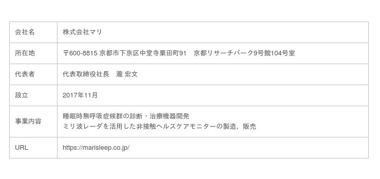 キリンホールディングス株式会社(社長 磯崎功典)は、独立系ベンチャーキャピタル大手のグローバル・ブレイン株式会社(社長 百合本安彦)と共同で設立したコーポレートベンチャーキャピタルファンド「KIRIN HEALTH INNOVATION FUND(キリン ヘルス イノベーション ファンド)」を通じて、先進的な完全非接触デバイスで睡眠領域の課題解決に取り組む株式会社マリ(社長 瀧宏文、以下「マリ社」)に、2022年1月14日(金)に出資しました。
