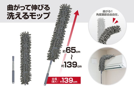 のび~る最大約139cm!「曲がって伸びる洗えるモップ」など便利な「お掃除グッズ」2種が7月新発売!
