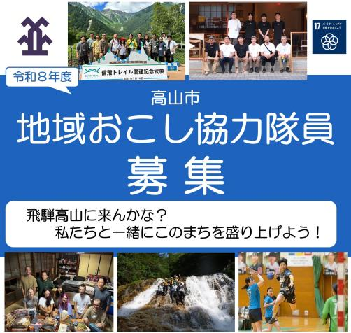高山市は現在、令和8年4月から地域の団体と一緒に活動する地域おこし協力隊員を募集しています。