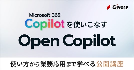 生成AI等の最新テクノロジーを活用して企業のDXを支援する株式会社ギブリー(本社:東京都渋谷区、代表取締役社長:井手高志、以下当社)は、マイクロソフトが提供する「Microsoft 365 Copilot(以下、Copilot)」を効果的に活用するための公開研修プログラム「Open Copilot(オープン・コパイロット)」を2024年9月18日より開始します。