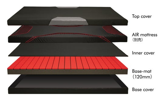[エアー]のマットレスの寝心地と耐久性をアップグレードさせるユニット型ベースマット。トップに挿入する(別売り)を自由に組み合わせることができ、トップカバーがマットレスをしっかりガードします。ベースマットでよりクッション性を向上し、厚み20cm以上のソリッドなベッドマットレスが完成します。スタイリッシュに全てを一体化でき、ベッドライフの充実をもたらします。