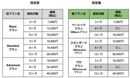 ・現状各プランの「6ヶ月」をご契約中のお客様は、自動更新のタイミングでいままで通り「6ヶ月」の金額が適用されます。