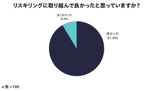 リスキリングに「すでに取り組んだ」、「現在取り組んでいる」人に対して、「リスキングに取り組んで良かったと思っていますか?」と質問したところ、91.6%の人が「リスキリングに取り組んで良かった」と回答。リスキリング経験者のほとんどが、キャリアへの好影響を実感していることがわかります。