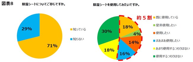 寝具の下に敷いて 、カビの発生を防止する除湿シートについて約7割の方が知っており、「既に