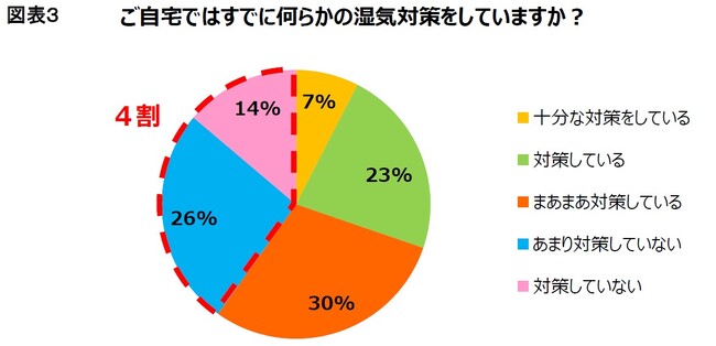 ご自宅での湿気対策の実施状況についてお聞きしたところ、「あまり対策をしていない」、「対策していな