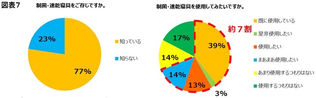 割の人が「既に使用している 」「 今後 使用したい 」と回答しました。 乾きにくい寝具 は制菌