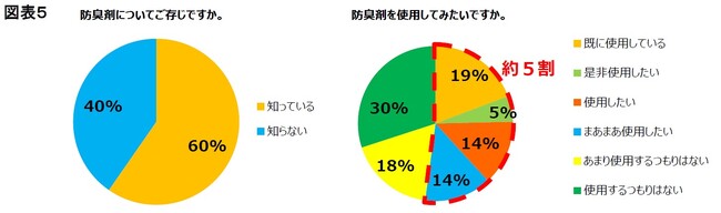 また、すでに使用している人と、これから使用したい人を合計すると約 5 割に上り、生乾き臭の