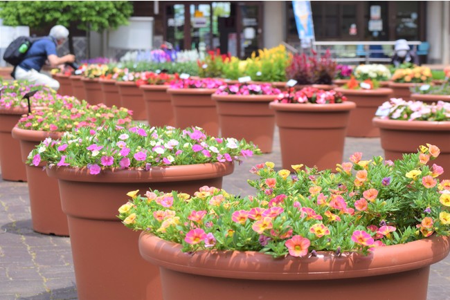 今まで関係者しか見ることのできなかった圃場(ほじょう)での「花や植物の活力や耐性に関する試験」を公園内で実施するもので、約500鉢のプランターが園内を彩ります。