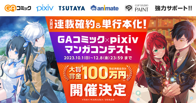 ピクシブ株式会社(本社:東京都渋谷区、代表取締役:國枝信吾、以下ピクシブ)が運営するイラスト、マンガ、小説作品の投稿コミュニケーションプラットフォーム「pixiv」は、コミックレーベル「GAコミック」を展開するSBクリエイティブ株式会社(本社:東京都港区、代表取締役社長:土橋康成、以下「SBクリエイティブ」)と、株式会社アニメイト(本社:東京都板橋区、代表取締役:藤樹潤)、カルチュア・コンビニエンス・クラブ株式会社(本社:東京都渋谷区、代表取締役社長:高橋 誉則)との4社共同で、「GAコミック×pixiv マンガコンテスト」を2023年10月1日(日)より開催します。