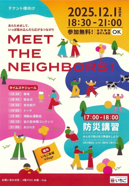いちごが保有するオフィスと商業の複合ビル「いちご赤坂Village」にて、テナント様や近隣の皆さまをつなぐ「お隣りさん同士の交流会」イベントとして、「いちご赤坂Village - Meet The Neighbors!」を2025年12月1日に開催しました。いちご赤坂Villageは、いちごのオフィスブランド「Villageシリーズ」であり、ご入居いただくテナント様や地域の皆さまと一つのコミュニティを形成することを目指しております。