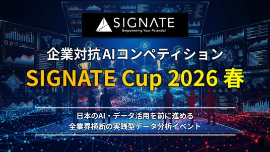 AI活用の戦略策定から実行、人材育成までを一気通貫で支援する株式会社SIGNATE(本社:東京都中央区、代表取締役社長:齊藤 秀、以下「SIGNATE」)は、企業対抗AIコンペティション「SIGNATE Cup 2026 春」を、2026年5月25日から開催いたします。