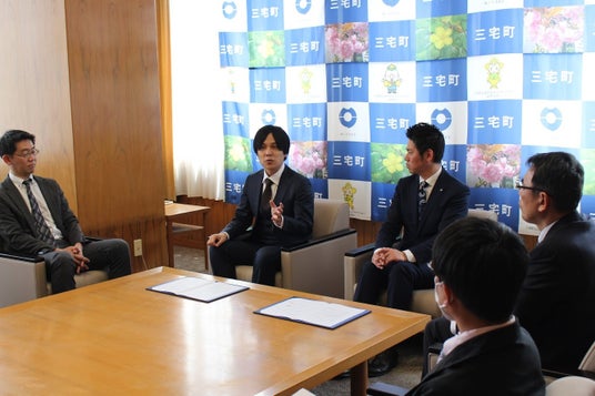 (左から株式会社官民連携事業研究所 代表取締役 鷲見 英利、株式会社SoLabo 代表取締役 田原 広一、三宅町役場 三宅町長 森田 浩司)
