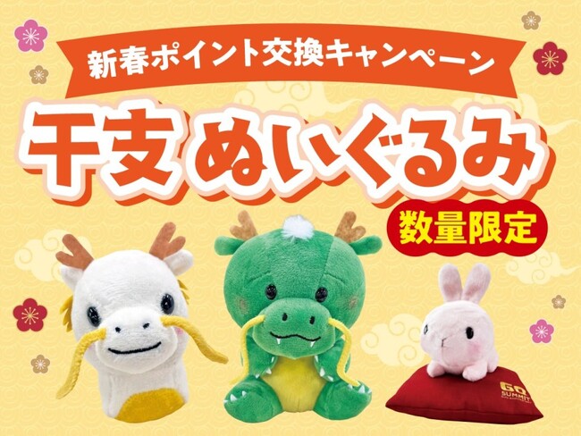サミットは、年始恒例企画としてオリジナルの干支ぬいぐるみをサミットポイントで交換できるキャンペーンを行います。2024年は辰のぬいぐるみ、みどりの「たつのしん」と白の「りゅうのしん」が登場します。