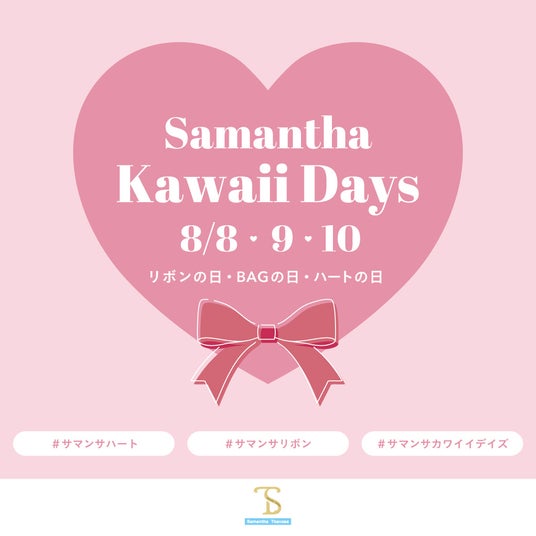 株式会社サマンサタバサジャパンリミテッド (代表取締役社長:古屋 幸二 所在地:東京都港区)が、8/8~8/10 リボンの日・BAGの日・ハートの日にちなんで、3日間限定でスペシャルキャンペーンを開催する。