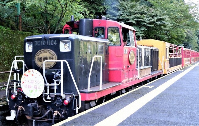 観光名所・嵐山と、山を越えた亀岡市を結ぶ観光列車。保津川沿いを走行し、トロッコ嵯峨駅からトロッコ亀岡駅までの片道7・3キロメートルを約25分で結びます。