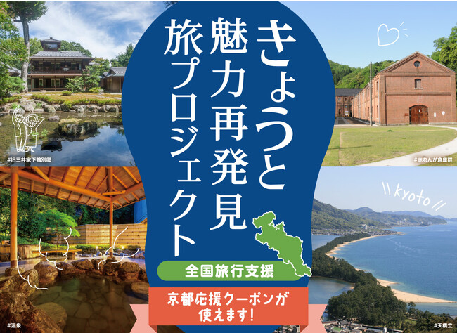 京都府の全国旅行支援「きょうと魅力再発見旅プロジェクト」を適用可能。旅行代金20%割引!+京都府地域クーポン付2,000円付き