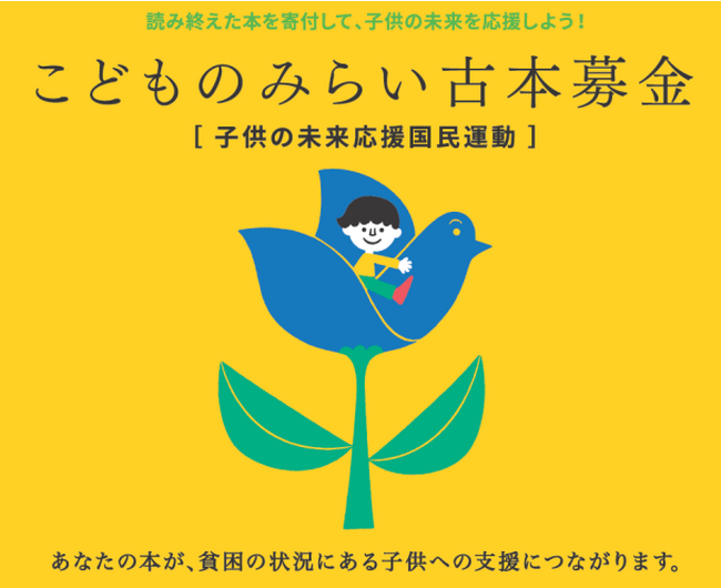 「こどものみらい古本募金」とは、すべてのこどもたちが夢と希望を持って成長していける社会を目指す「こどもの未来応援国民運動」の一環としてつくられた基金です。