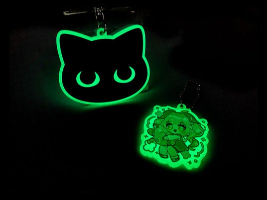 暗い場所でしっかり光るオリジナル蓄光アクリルキーホルダー