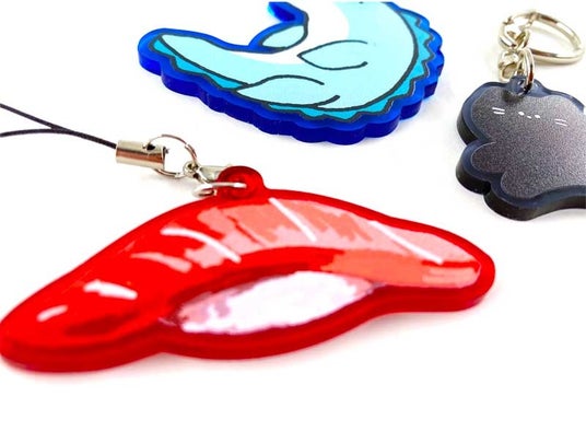 アクリルキーホルダーは、透明なアクリル板にデザインをプリントし、カット加工を施して仕上げる人気アイテム。推し活グッズや同人イベント、ショップ販促ノベルティ、記念品など幅広いシーンで活用されています。