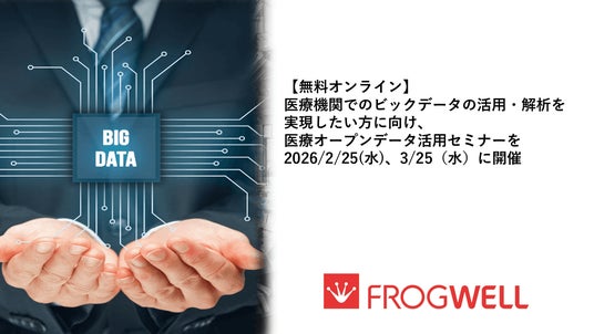 フロッグウェル株式会社は、医療機関の方々に向けて、オープンデータやBIツールの活用方法が分かるWebセミナーを2026/2/25(水)、3/25(水)に無料開催いたします。