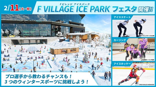 北海道ボールパークFビレッジで初開催される氷と雪のテーマパーク「F VILLAGE ICE PARK」では2月11日(火・祝)、小中学生を対象にアイススケート・カーリング・アイスホッケーを学べるワークショップを開催いたします。