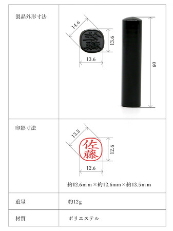 印面サイズ:約12.6mm×12.6mm スーパー楕円