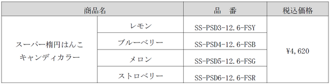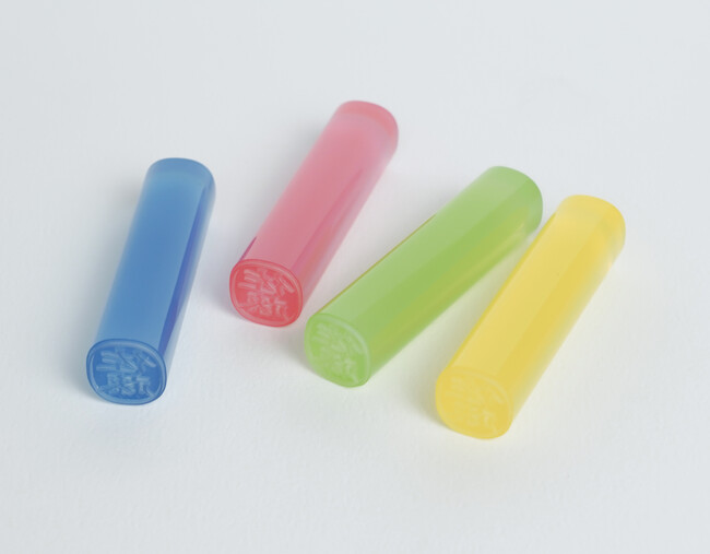 この度、ポップな半透明の「スーパー楕円はんこ キャンディカラー」を各色100本テスト販売します。カラーバリエーションは、もぎたて果実のみずみずしさを表現したブルーベリー、ストロベリー、メロン、レモンをご用意しています。