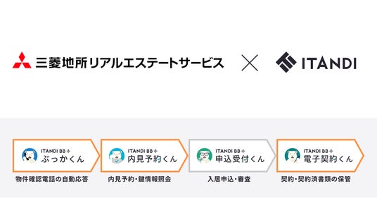 テクノロジーで不動産取引をなめらかにするイタンジ株式会社(以下「イタンジ」)は、2024年12月より、三菱地所リアルエステートサービス株式会社(以下「三菱地所リアルエステートサービス」)に、 イタンジが提供する物件確認電話の自動応答システム「ぶっかくん」、賃貸住宅の内見予約受付システム「内見予約くん」、2025年1月(予定)より、不動産関連電子契約システム「電子契約くん」が導入されることをお知らせします。