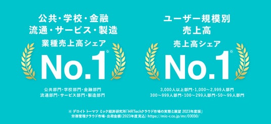 デロイト トーマツ ミック経済研究所「HRTechクラウド市場の実態と展望2023年度版」調査によりNo.1を獲得した項目一覧